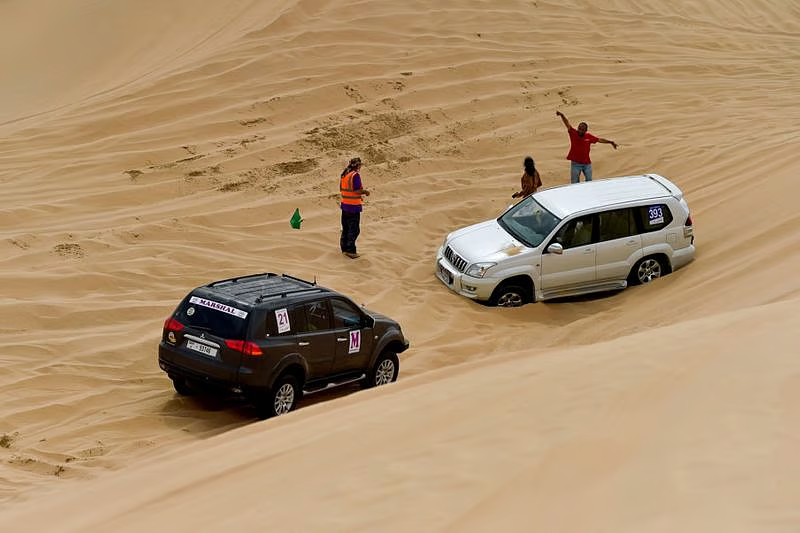 Use radios for quick communication, especially if you spot obstacles or encounter difficulties. If you get stuck in the sand (which can happen to anyone), don’t panic. Signal your team for assistance, follow the marshals’ guidance, and never wander away from your vehicle.
