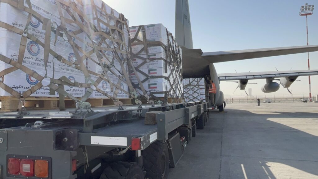 Transporting aid from Kuwait to Gaza requires meticulous planning and coordination. Upon arrival at Al-Arish Airport in northern Sinai, Egypt, the supplies are carefully unloaded and transferred onto trucks for the next leg of the journey. The trucks carry the aid to the Rafah border crossing, a critical point of entry into Gaza. From there, the supplies are distributed to families in need, with oversight from humanitarian organizations on the ground.